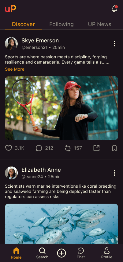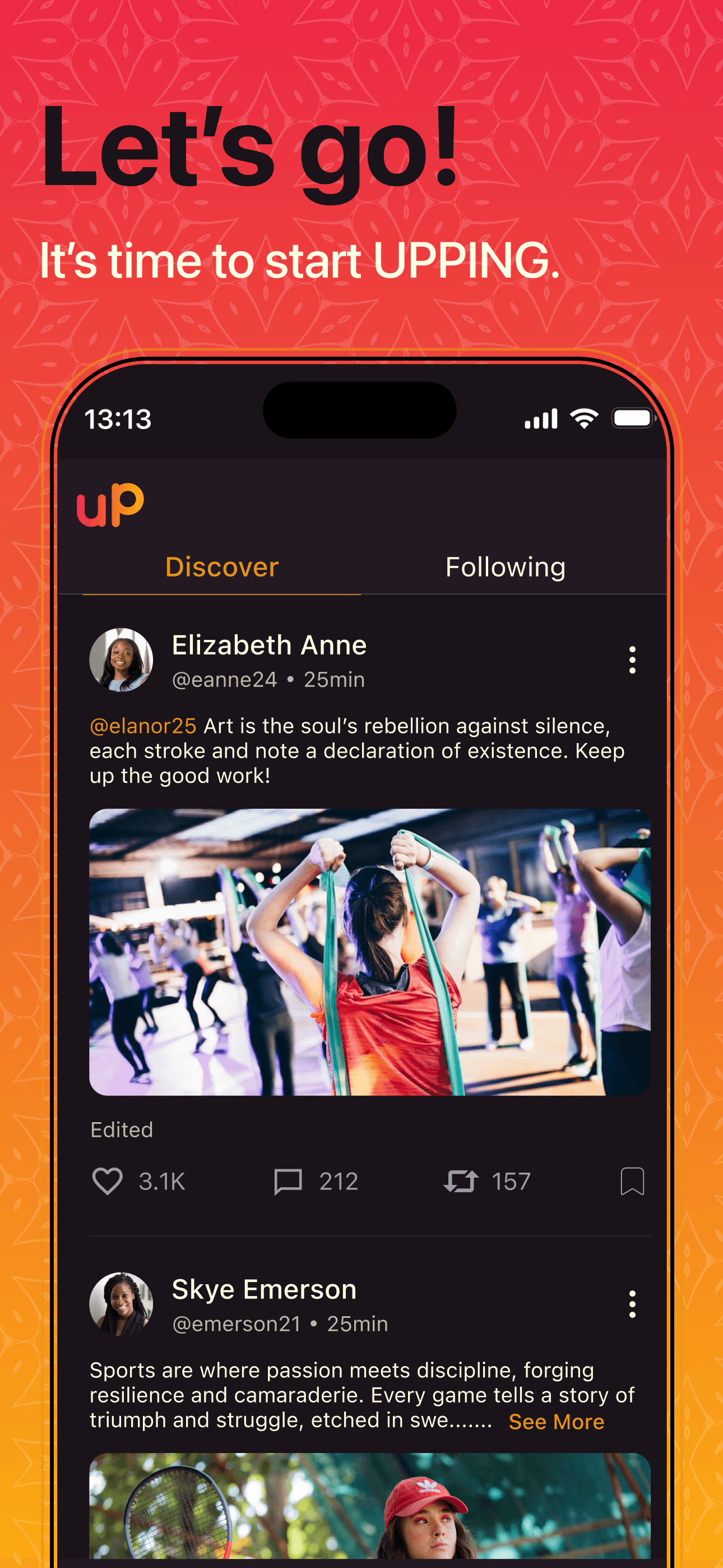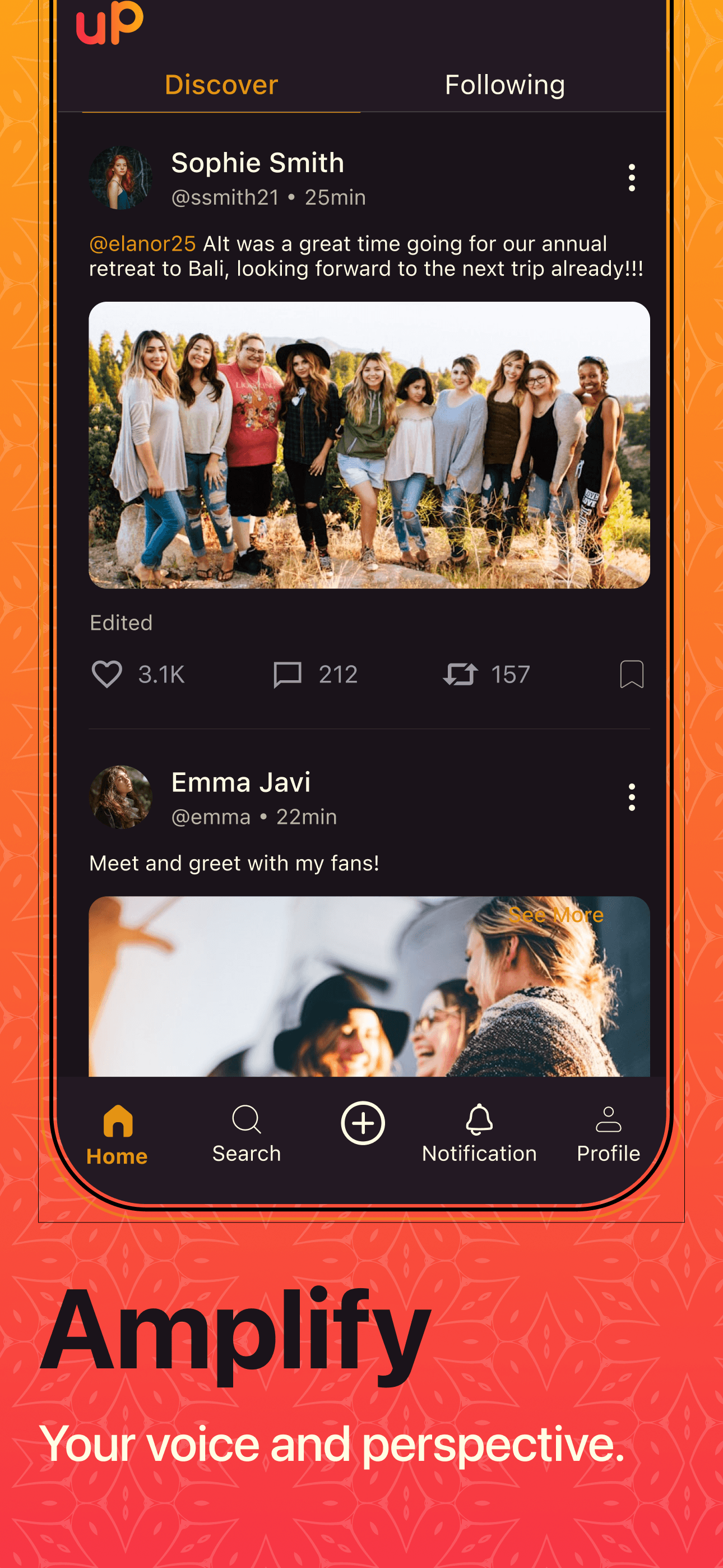 UP is a social platform that cares about YOU! We invite you to discover, connect, share, and amplify what matters most to you right now.